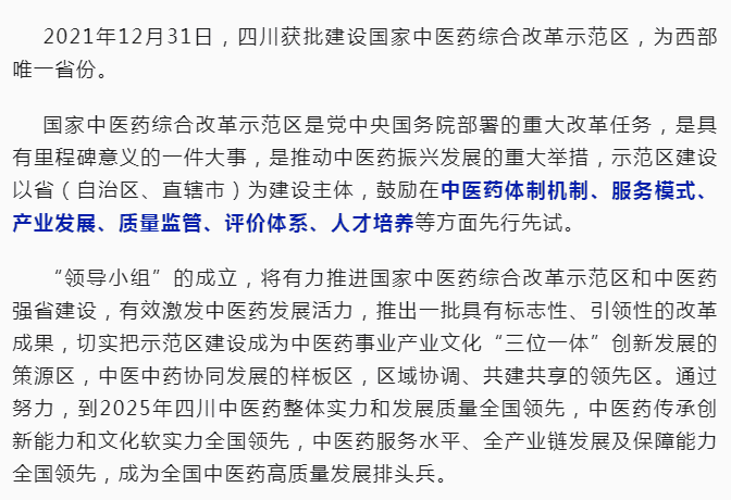 省長(zhǎng)任組長(zhǎng)!四川省推進(jìn)國(guó)家中醫(yī)藥綜合改革示范區(qū)和中醫(yī)藥強(qiáng)省建設(shè)工作領(lǐng)導(dǎo)小組成立